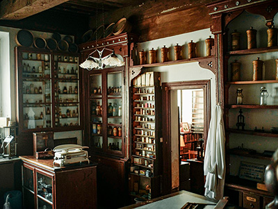 La farmacia de D. Julián del Río Hortega, abrio sus puertas el dos de septiembre de 1918, ejerciendo en ella tres generaciones de farmacéuticos. A finales de 1994 la farmacia se traslada a otra ubicación, llevándose solo los productos en vigor. Se decide conservar la antigua farmacia, para lo cual, todo lo que se había ido retirando a lo largo de esos años con el fin de dejar sitio a las especialidades que habían invadido las estanterías, los tarros, frascos, utensilios, libros, etc. vuelven otra vez a ocupar sus lugares iniciales y la antigua farmacia del Río Hortega, recupera su aspecto original como testimonio de lo que fue la farmacia desde principios del siglo XX.