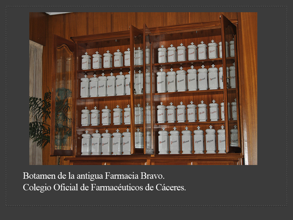 El Colegio de Farmacéuticos de Cáceres conserva el botamen que perteneció a la Farmacia Bravo, instalada en la Plaza Mayor de la localidad norbiense y algún instrumental utilizado por el laboratorio colegial en la segunda mitad del siglo XX: autoclaves, colorímetros, agitadores y espectrómetros.