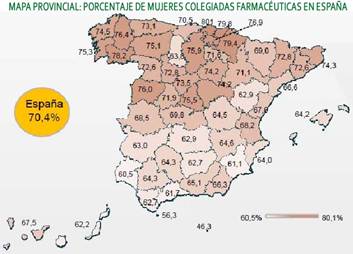Además, Farmacia es la segunda profesión con mayor porcentaje de mujeres colegiadas. De los 63.593 farmacéuticos colegiados en España en todos los ámbitos de ejercicio, 44.756 son mujeres, un 70,4% del total. Este dato sitúa a la Farmacia como la segunda profesión sanitaria con mayor porcentaje de mujeres, después de los profesionales de Enfermería. Vizcaya (80,1%), Guipúzcoa (79,8%) y Navarra (79,4%) son las provincias con mayor porcentaje de mujeres entre sus colegiados.