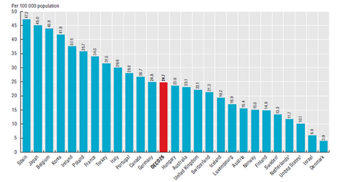 Número de farmacias por 100.000 habitantes-OCDE