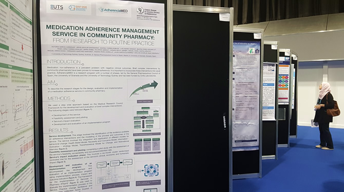 Glasgow, 5 de septiembre de 2018.- El Consejo General de Colegios Oficiales de Farmacéuticos presenta hoy en Glasgow, Reino Unido, sendos pósteres de dos de sus proyectos de investigación que ha desarrollado a lo largo de los últimos años: conSIGUE y AdherenciaMED. Estos proyectos tienen como objetivo demostrar el impacto de la intervención farmacéutica y la implantación en farmacias comunitarias de los servicios de Seguimiento Farmacoterapéutico y Adherencia Terapéutica, respectivamente, y son promovidos por el Consejo General de Farmacéuticos que cuenta con las Universidades de Granada y Tecnológica de Sidney y la colaboración de Laboratorios CINFA.