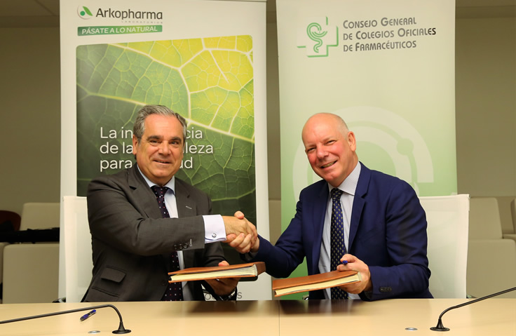 Madrid, a 25 de junio de 2019. El Consejo General de Colegios Oficiales de Farmacéuticos y Arkopharma Laboratorios han firmado un convenio marco de colaboración para el desarrollo de actuaciones profesionales en torno a la fitoterapia, que tiene como objetivo resaltar la figura del profesional farmacéutico como experto en plantas medicinales y agente sanitario clave en las estrategias de salud pública. Así mismo, ambas partes se comprometen a realizar materiales educativos sobre prevención y tratamiento de trastornos leves a través de las plantas medicinales.