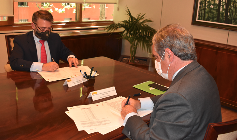 El secretario general gerente del Instituto Social de las Fuerzas Armadas (ISFAS), José Ramón Plaza, y el presidente del Consejo General de Colegios Farmacéuticos, Jesús Aguilar, han firmado en la tarde de ayer la Adenda al concierto que tienen suscrito ambas entidades y que posibilitará la prescripción electrónica a todo el colectivo protegido por ISFAS, casi 600.000 beneficiarios.