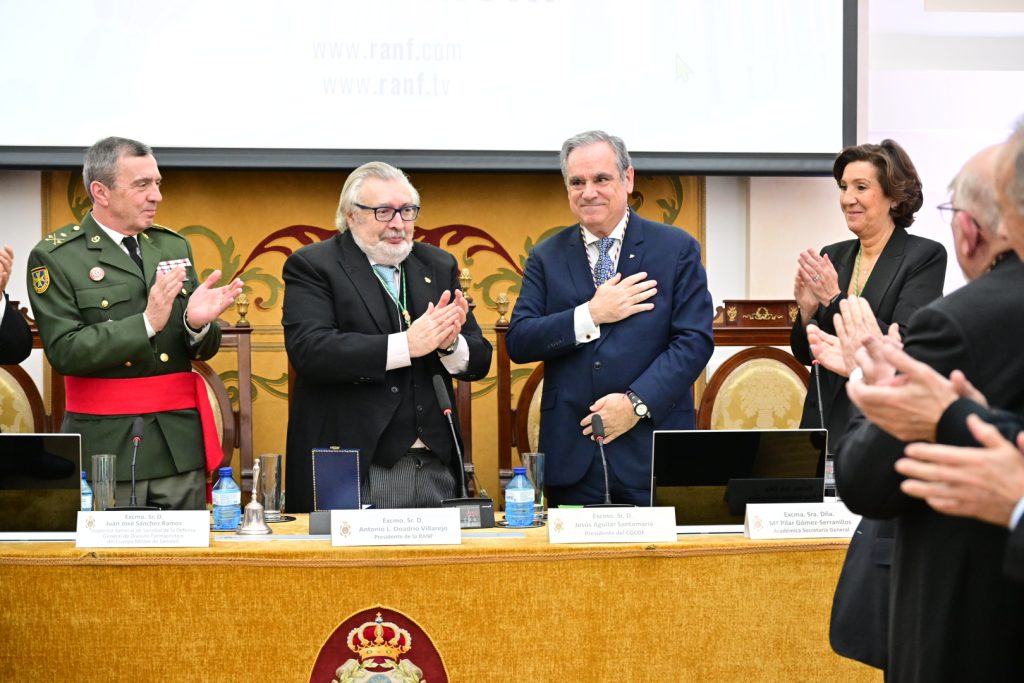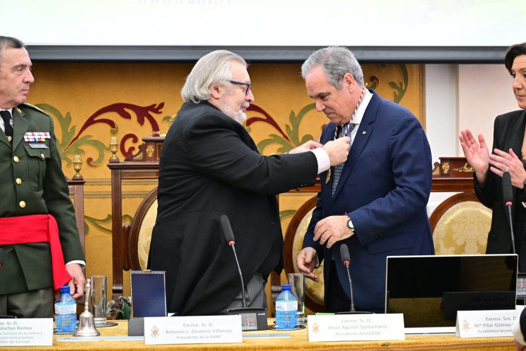El presidente del Consejo General de Colegios Farmacéuticos, Jesús Aguilar, ha recibido hoy la Medalla de Oro de la Real Academia Nacional de Farmacia (RANF) en reconocimiento “a la dedicación, esfuerzo y buen hacer como presidente del Consejo General de Colegios Oficiales de Farmacéuticos en defensa de la profesión farmacéutica, especialmente durante la pandemia”. La Medalla le ha sido impuesta esta tarde durante la sesión inaugural del curso 2024 y ha sido concedida por acuerdo de la Junta de Gobierno de la Real Academia Nacional de Farmacia.