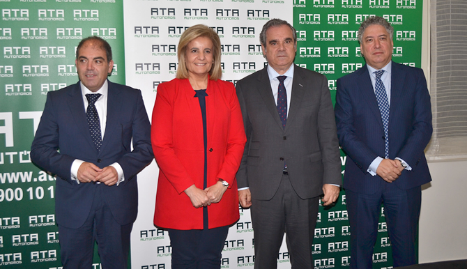 28 de mayo de 2018.- Los presidentes del Consejo General de Colegios Oficiales de Farmacéuticos, Jesús Aguilar, y de la Federación Nacional de Trabajadores Autónomos (ATA), Lorenzo Amor, han suscrito esta mañana un nuevo convenio de colaboración mediante el que ambas instituciones continuarán desarrollando actividades conjuntas para los farmacéuticos colegiados del colectivo de autónomos. De esta manera, Consejo General y ATA, renuevan el compromiso de colaboración que mantienen desde hace años y que ha permitido desarrollar diversas iniciativas. El convenio se ha firmado en presencia de la ministra de Empleo y Seguridad Social, Fátima Báñez, quien ha señalado que “la farmacia y los autónomos son los mejores exponentes de la vertebración de España”.