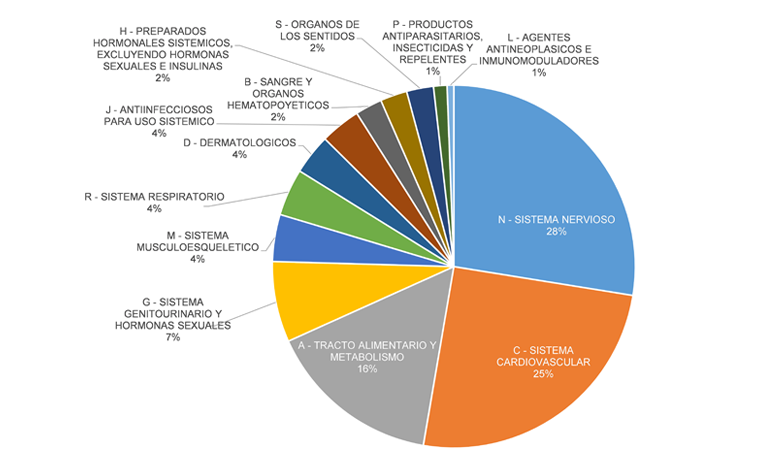 Por grupos terapéuticos los medicamentos para el sistema nervioso y cardiovascular, suman más de la mitad (53%) de todos los medicamentos que han registrado incidencias en el suministro según los datos recogidos por CISMED.