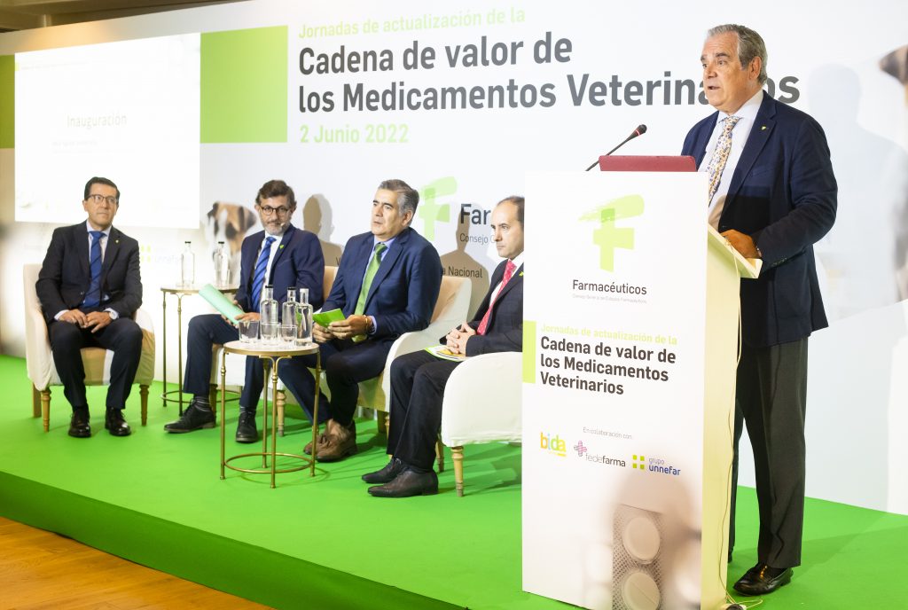 El presidente del Consejo General de Colegios Farmacéuticos, Jesús Aguilar, ha inaugurado hoy en Madrid la Jornada de la Cadena de valor de los Medicamentos Veterinarios, un encuentro que reúne a más de 150 farmacéuticos de toda España. Durante la inauguración el presidente del Consejo General ha destacado la oportunidad de la cita ya que “se encuentra en tramitación el Proyecto de Real Decreto por el que se regula la distribución, prescripción, dispensación y uso de medicamentos veterinarios”. En este sentido, Aguilar ha compartido la necesidad de esta actualización de la normativa “que desde el Consejo General compartimos, no solo para por su adecuación al Reglamento europeo, sino también para incorporar criterios que reduzcan el riesgo de desarrollo de resistencia a antimicrobianos”.