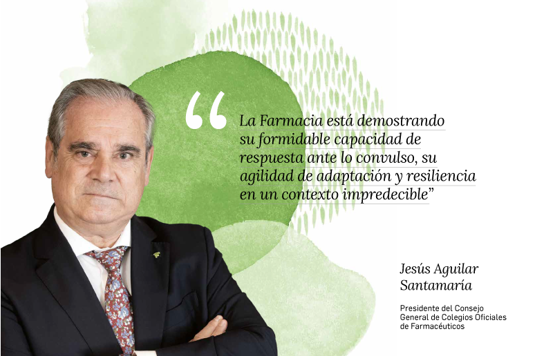 El presidente del Consejo General de Colegios Farmacéuticos, Jesús Aguilar, hace balance de 2021 repasando los hitos y desafíos que han marcado el año, las estrategias que están guiando los pasos del Consejo y las tendencias que perfilan el futuro de la profesión.