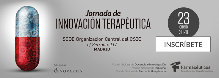 Madrid, 7 de enero - Dentro de poco más de dos semanas, el próximo 23 de enero, se celebrará en Madrid la Jornada de Innovación Terapéutica. Se trata de una iniciativa organizada por el Consejo General de Colegios Oficiales de Farmacéuticos, con la participación de las Vocalías de Docencia e Investigación, Industria y Farmacia Hospitalaria. El encuentro, que comenzará a las 9.00 horas y concluirá sobre las 17.00 horas, se desarrollará en la sede del Centro Superior de Investigaciones Científicas (CESIC), en la calle Serrano 117.