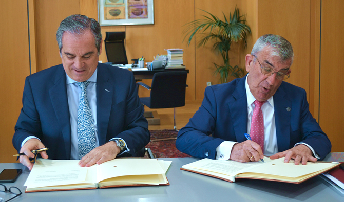 Madrid, 2 DE JULIO 2018.- El presidente del Consejo General de Colegios de Farmacéuticos, Jesús Aguilar, y el presidente de Farmacéuticos Sin Fronteras, Rafael Martínez Montes han suscrito un convenio de colaboración cuyo objetivo es potenciar la figura del farmacéutico a la hora de atender las necesidades básicas de salud de los colectivos vulnerables.