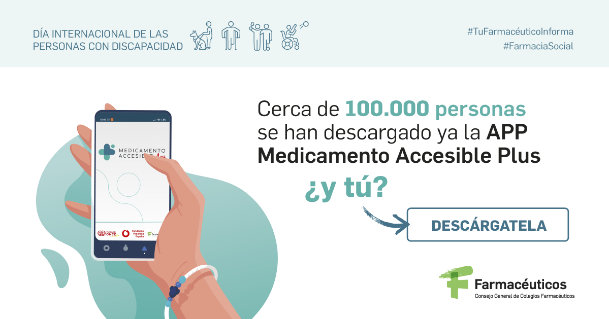 A este respecto, el Consejo General tiene vocación por ser una referencia en la información sobre el medicamento para toda la población y especialmente para los grupos más vulnerables. Razón por la que en los últimos años ha impulsado diferentes herramientas y soluciones, entre las que destaca MEDICAMENTO ACCESIBLE plus, una aplicación gratuita promovida en colaboración con Fundación ONCE y Fundación Vodafone España, que permite la consulta de información actualizada sobre los más de 20.000 medicamentos autorizados en España, buscando por el nombre o mediante la captura del código de barras, y de manera totalmente accesible que garantiza su comprensión independientemente de la discapacidad del usuario. Utilidades que han garantizado el éxito de la misma, alcanzando, en diciembre de 2022, cerca de las 100.000 descargas.