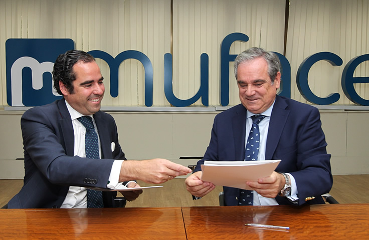A tal fin, el director general de MUFACE, Antonio Sánchez, y el presidente del CGCOF, Jesús Aguilar, han suscrito la Adenda que incorpora al Concierto las especificaciones relativas a la dispensación por las oficinas de farmacia de las recetas electrónicas prescritas a todo el colectivo protegido por MUFACE. El acto de la firma de la adenda ha contado con la presencia de la secretaria general del Consejo General de Colegios Farmacéuticos y con presidentes miembros del Grupo de Trabajo con las mutualidades de la Organización Farmacéutica Colegial.