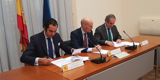 Madrid, 17 de diciembre de 2018.- El secretario de Estado de Función Pública, José Antonio Benedicto, ha presidido hoy el acto de firma de la renovación para los años 2019 y 2020 del concierto suscrito en 2014 por MUFACE y el Consejo General de Colegios Oficiales de Farmacéuticos (CGCOF) por el que se fijaron las condiciones para la ejecución de la prestación farmacéutica de la Mutualidad a través de las Oficinas de Farmacia, junto con el acuerdo que recoge las bases de la colaboración para la implementación del sistema de receta electrónica de la Mutualidad.