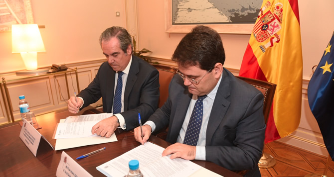 Madrid, 26 de junio de 2017.- El gerente de la Mutualidad General Judicial (MUGEJU), Gustavo Blanco, y el presidente del Consejo General de Colegios Oficiales de Farmacéuticos (CGCOF), Jesús Aguilar, han suscrito esta mañana el nuevo concierto por el que se fijan las condiciones para la ejecución de la prestación farmacéutica de la Mutualidad a través de las Oficinas de Farmacia. El concierto firmado entrará en vigor el 1 de enero de 2018 y tendrá una vigencia de cuatro años, pudiéndose prorrogar por plazos de dos años, con un máximo de dos prórrogas.