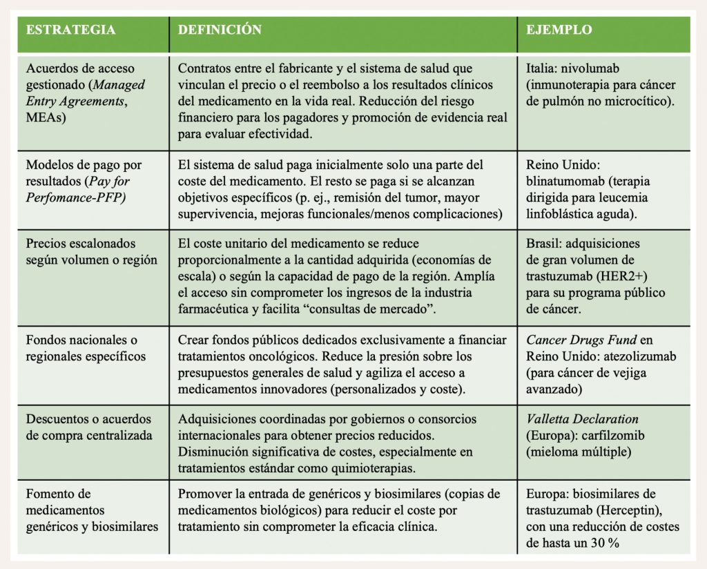 Tratamiento farmacológico para pacientes con cáncer: desafíos específicos debido a los altos costes asociados con medicamentos innovadores (inmunoterapias y terapias dirigidas). Estrategias clave para garantizar sostenibilidad y solvencia financiera y acceso equitativo1,2: