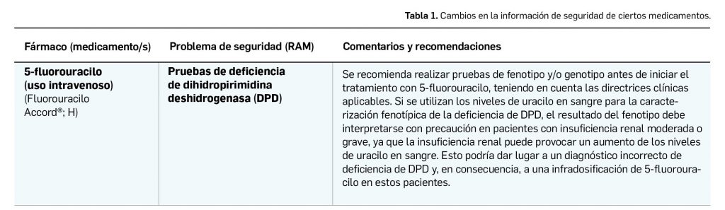En la tabla siguiente se muestran los últimos cambios de información de seguridad acordados recientemente en el PRAC.