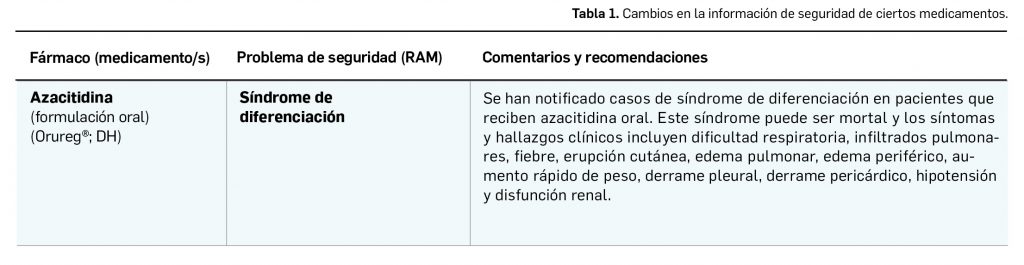 En la tabla siguiente se muestran los últimos cambios de información de seguridad acordados recientemente en el PRAC.