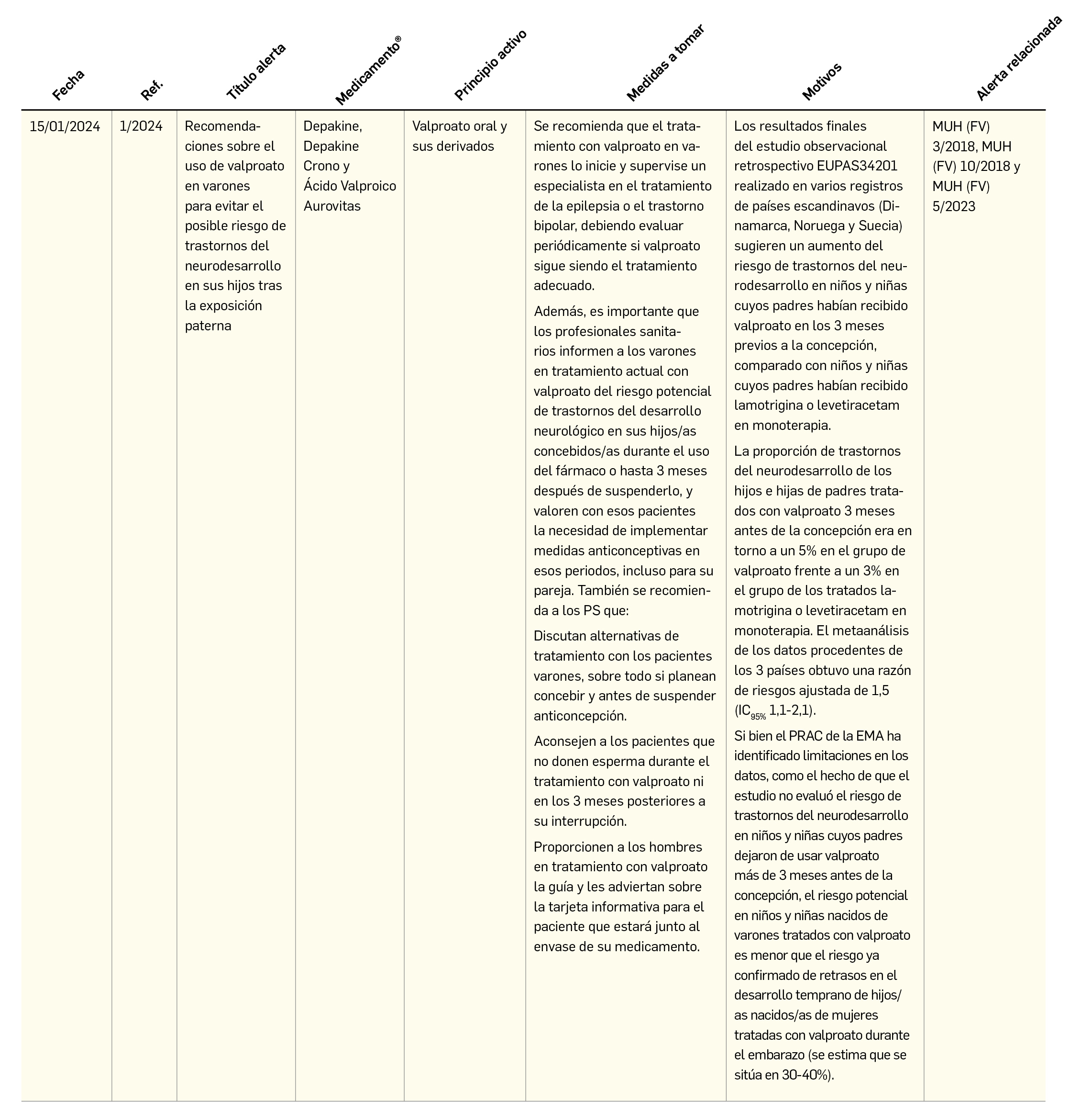 Resumen de las notas sobre seguridad y farmacovigilancia publicadas por la AEMPS desde principios del año 2024. Para información más ampliada y acceso al documento de la AEMPS, puede consultar BOT PLUS.