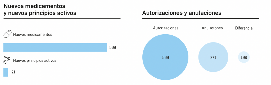 Estadística de altas y bajas, composición, precio y características de medicamentos