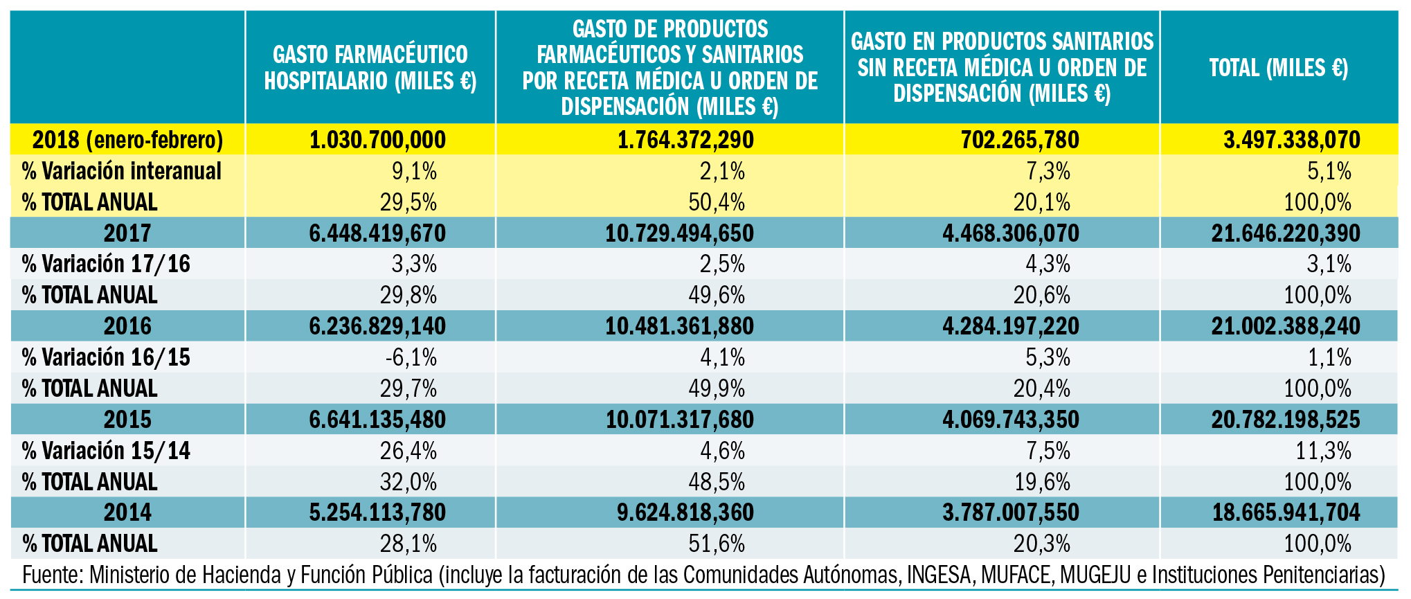 Gasto público en productos farmacéuticos y sanitarios en España