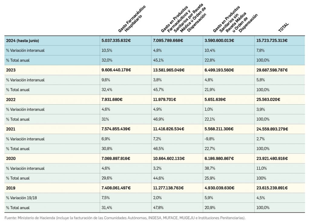 Gasto público en productos farmacéuticos y sanitarios en España