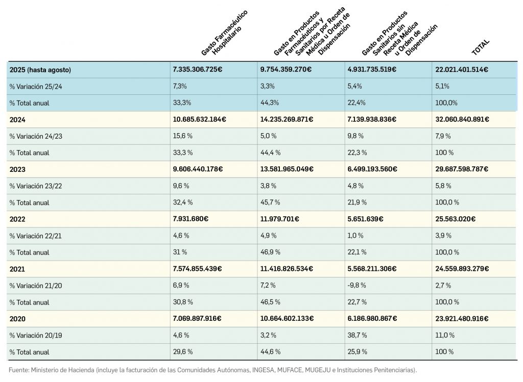 Gasto público en productos farmacéuticos y sanitarios en España