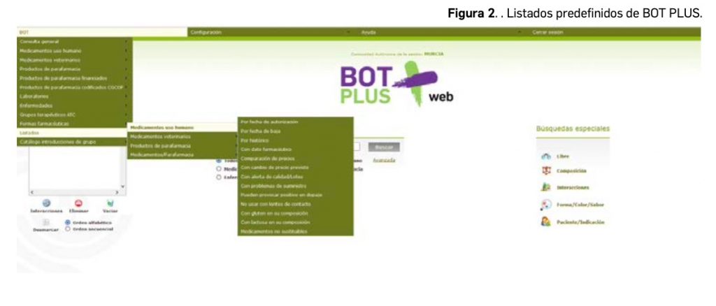 Los listados predefinidos se han aumentado en la última versión publicada de BOT PLUS, añadiendo nuevos listados de interés, entre los que destacan los siguientes (Figura 2):