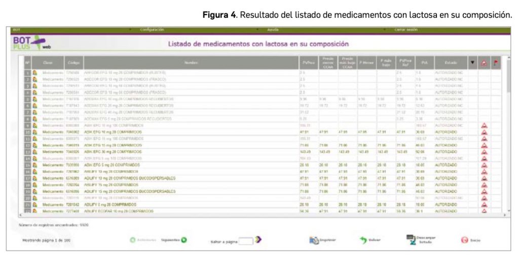 Por ejemplo, podemos obtener medicamentos con lactosa en su composición (Figura 3).