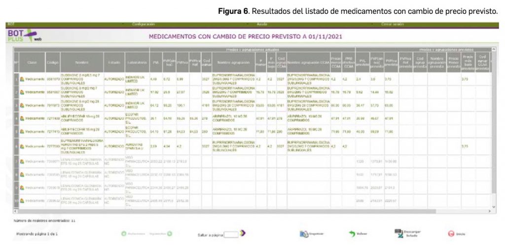 Dentro del listado se incluyen todos los medicamentos que van a cambiar de precio a partir de una determinada fecha (Figura 6). También aparece la información de la agrupación homogénea en la está integrado.