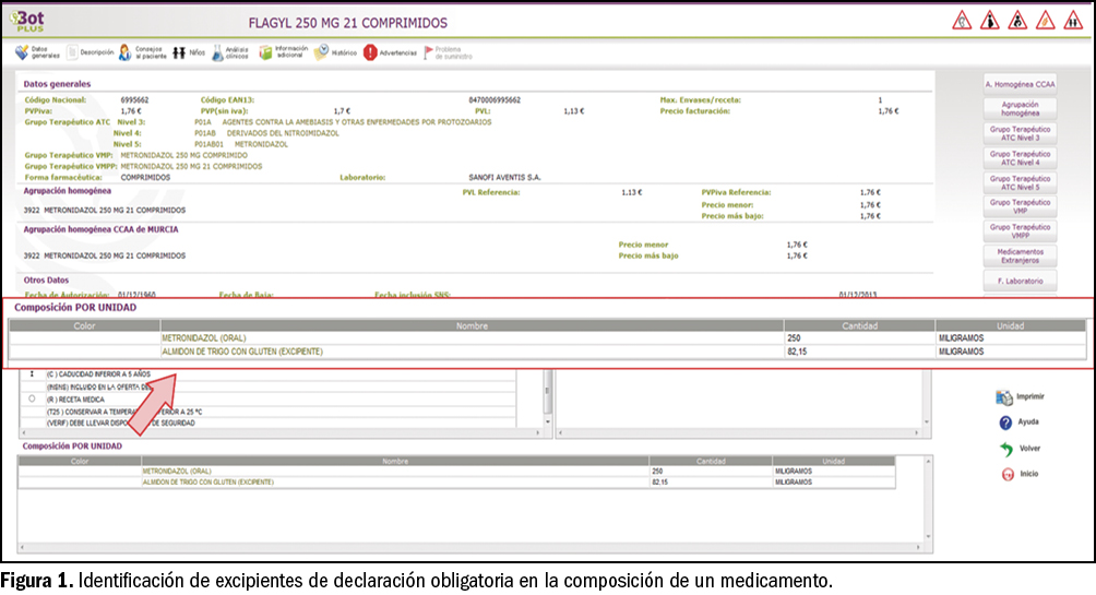 Igualmente, los medicamentos que contienen un excipiente de declaración obligatoria tienen una serie de advertencias especiales que alertan de la presencia de uno de estos excipientes (Figura 2).