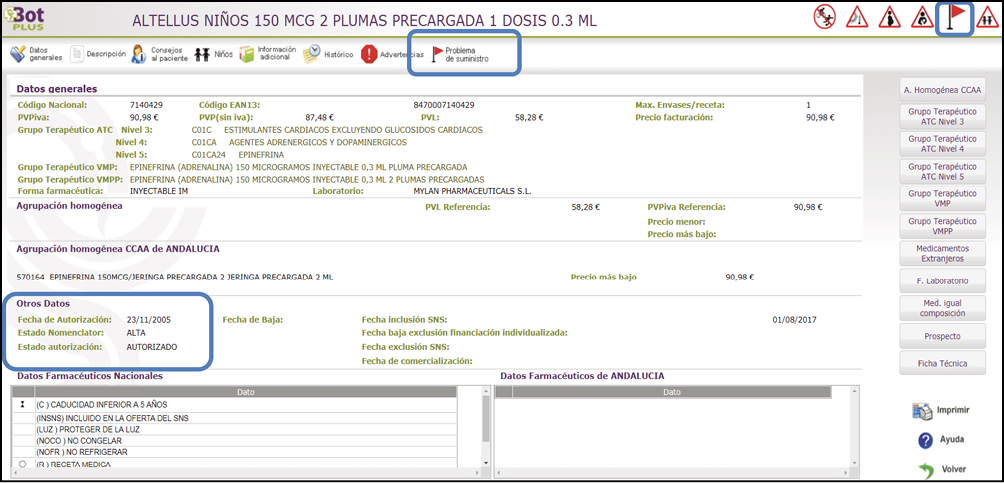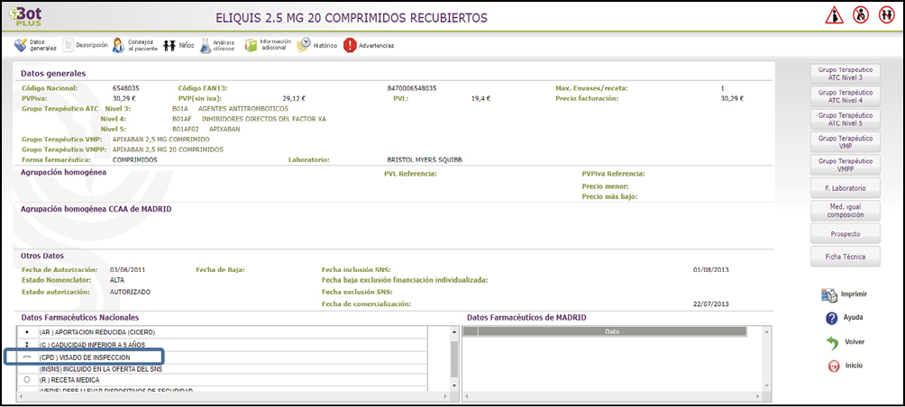Además, Bot PLUS incluye dos campos de estado para cada medicamento: