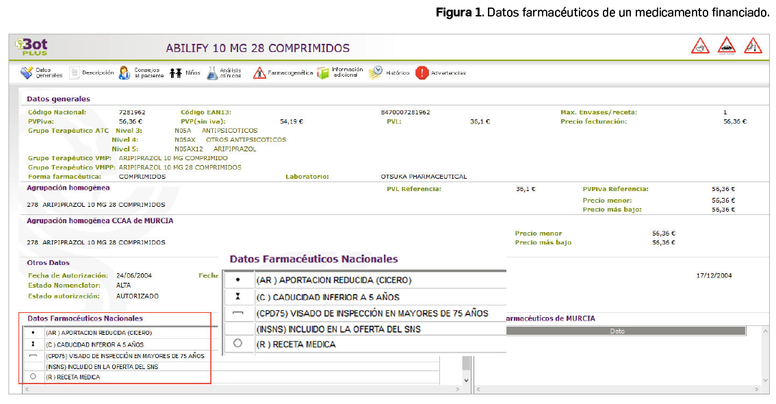 La inclusión de esta información hace de Bot PLUS una herramienta indispensable para conocer las condiciones de financiación de los medicamentos. Esto, unido a la información relativa a precios, que veremos en el siguiente artículo de esta sección, constituye una herramienta de gran utilidad para los farmacéuticos en la dispensación de medicamentos en el ámbito del Sistema Nacional de Salud.