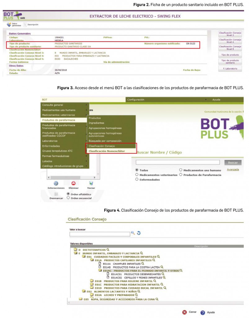Actualmente BOT PLUS incluye información sobre 52.000 productos de parafarmacia, tanto de productos incluidos en la oferta del sistema nacional de salud (financiados), como no incluidos en la oferta (no financiados). Para facilitar la búsqueda e identificación de estos productos, se encuentran disponibles en BOT PLUS tres clasificaciones: