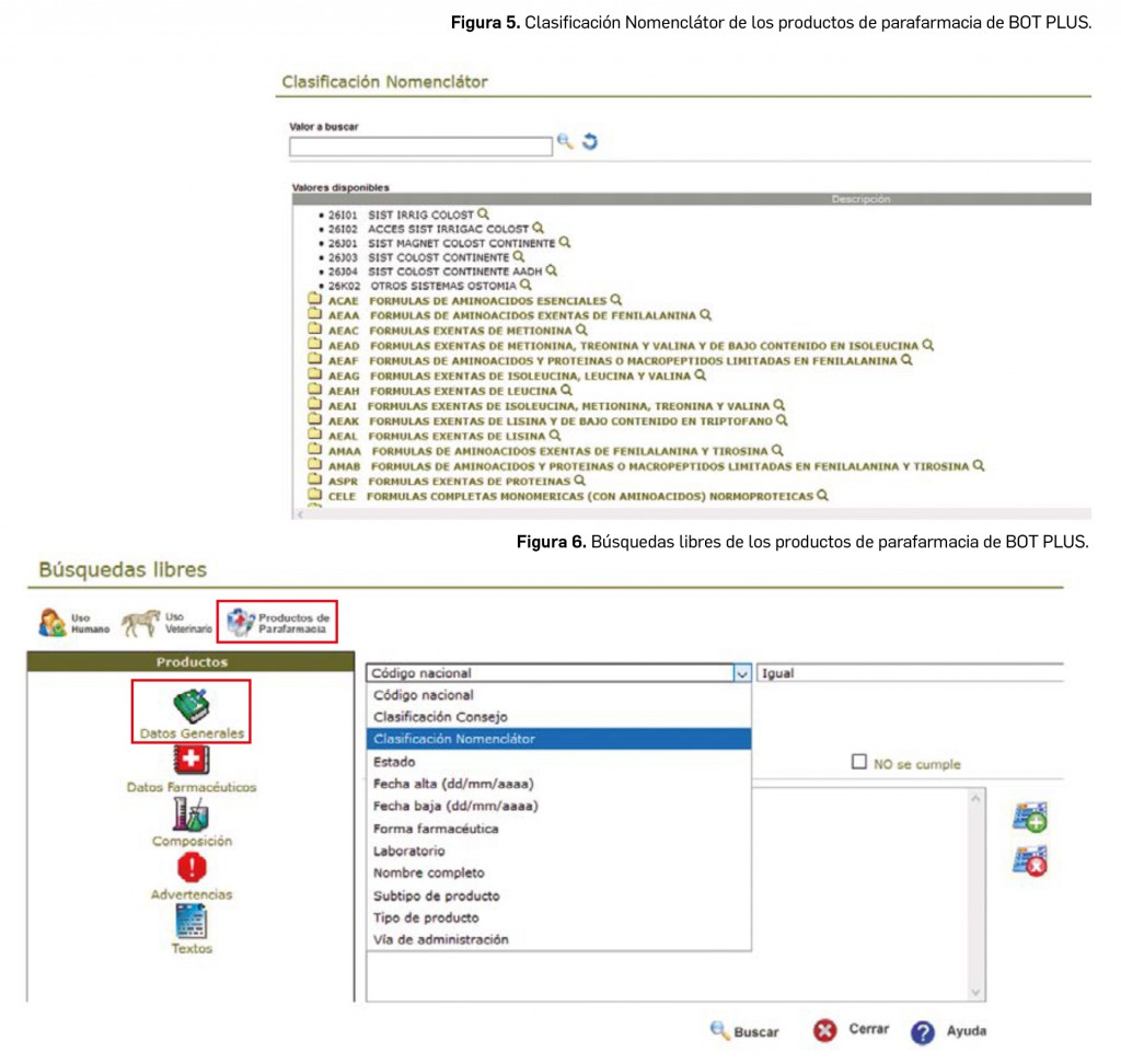 Si queremos realizar búsquedas desde la Clasificación Consejo o Clasificación Nomenclátor, podemos acceder a ellas a través del menú BOT situado en la parte superior izquierda de la pantalla, y seleccionando Productos de parafarmacia (Figura 3).