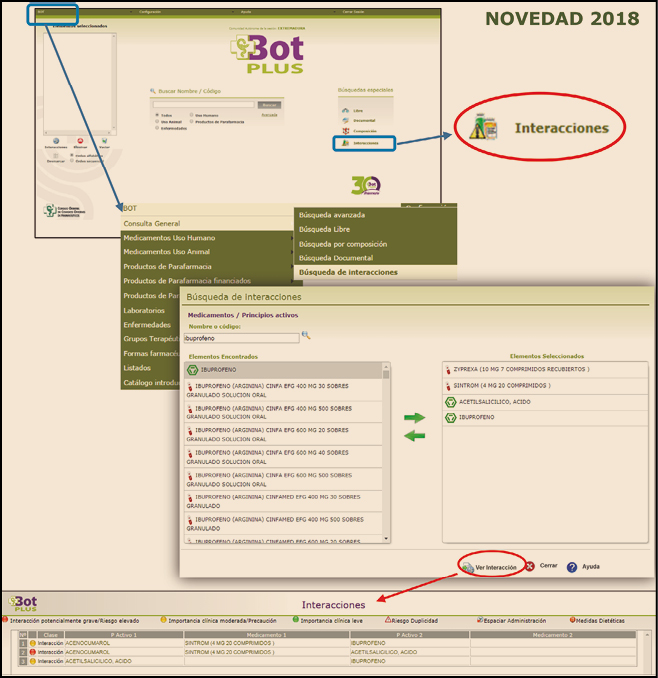 * NOVEDAD: se puede acceder a la ficha de interacción en un único paso, desapareciendo el antiguo selector de principios activos y el botón de “Ver Interacción”.