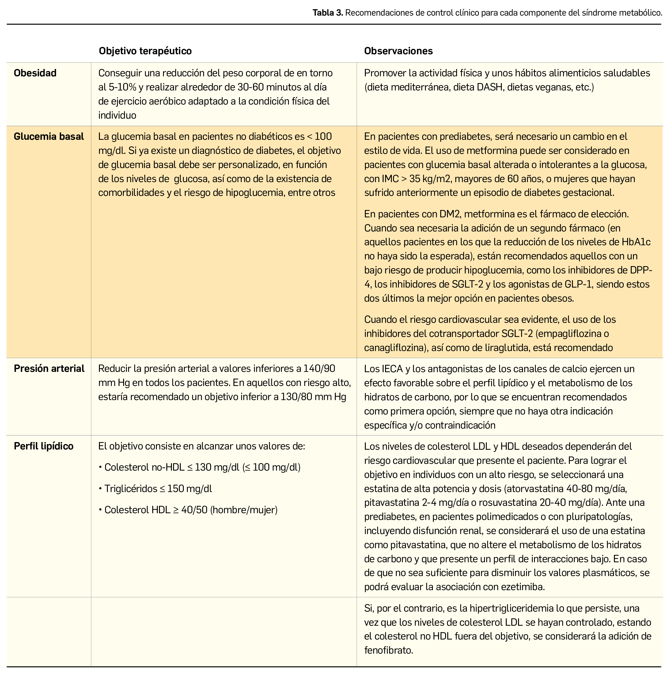 El pronóstico del SM depende del grado de control de los componentes que lo forman: un adecuado control de la tensión arterial, de los lípidos, de la glucosa y del peso.