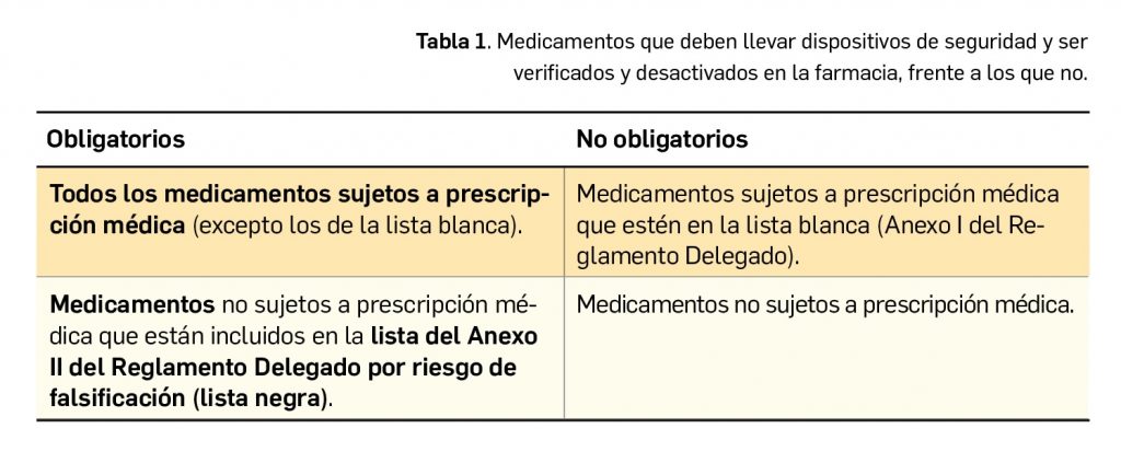 Este marco normativo de la Directiva 2011/62/UE (conocida como Directiva sobre Medicamentos) fue desarrollado a través del Reglamento Delegado (UE) 2016/161, estableciendo así la obligatoriedad, desde el 9 de febrero de 2019, de incluir dos dispositivos de seguridad en el embalaje exterior de la mayoría de los medicamentos de prescripción (y algunos sin receta con riesgo de falsificación).