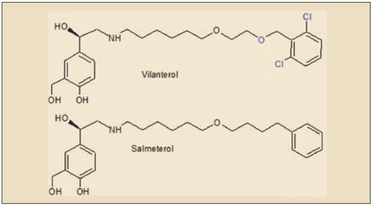 En definitiva, se trata de la primera combinación de un agonista β2 adrenérgicos de larga duración (LABA, long-acting beta-adrenoceptor agonist) y un glucocorticoide que está disponible para su uso tanto en asma como en EPOC y que solo requiere una única administración diaria en inhalación, lo cual, presumiblemente, podría facilitar la tasa de adherencia al tratamiento y, con ello, mejorar el curso y el pronóstico en estos pacientes. En este sentido, hasta ahora, al menos en España, las únicas combinaciones disponibles comercialmente de un LABA (formoterol, salmeterol) y glucocorticoides (beclometasona, budesonida, propionato de fluticasona) solo estaban autorizadas para el tratamiento del asma (con la excepción de salmeterol/fluticasona, que también lo está para EPOC) y todos ellos requieren la administración de dos dosis diarias (cada 12 h).