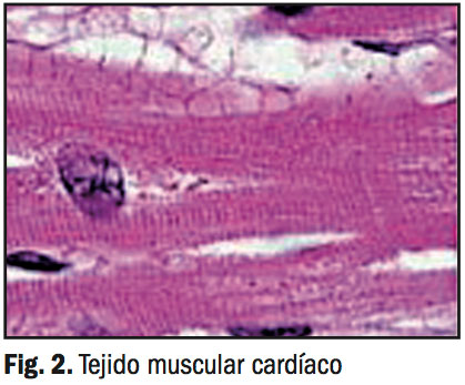 - Tejido vascular: existen diversas técnicas en estudio para la simulación de tejido vascular. Orientadas fundamentalmente a la simulación de vasos de gran y medio calibre, en los cuales se concentran la mayor cantidad de patologías vasculares que pueden ser tratadas con un trasplante como, por ejemplo, el baipás. No todas ellas están basadas en el clásico empleo de células sobre plataforma, si no que se persigue la obtención de un material que pueda presentar las características mecánicas necesarias para soportar los cambios de presión combinada con biocompatibilidad; en el tejido muscular cardíaco, que puede observarse en la Figura 2, esto es fundamental. Una vez más, la matriz extracelular que rodea a este tejido es un entramado tridimensional compuesto por fibras proteicas y polisacarídicas de dimensiones nanométricas y es por ello que una técnica como el electrohilado o electrospinning también ha sido evaluada para la creación de un soporte extracelular para injertos artificiales de tejido vascular. Este tipo de técnica puede aplicarse con diversos materiales poliméricos, permite un cierto control en las propiedades mecánicas del material obtenido y produce un hilo nanométrico sobreenrrolado que simula la estructura natural de los vasos sanguíneos. Técnicas algo más complejas con electrospinning combinados dan lugar incluso a un sistema con dos capas diferenciadas que permite una mejor emulación del entorno natural del vaso.