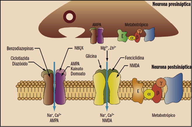 En este sentido, conviene recordar que el glutamato es el neurotransmisor excitatorio principal en el cerebro, donde tiene una distribución amplia y ubicua. En el cerebro humano, las neuronas glutamatérgicas proyectan sus axones desde la corteza a regiones subcorticales, tales como el locus coeruleus, núcleos del rafe y sustancia nigra, donde modulan vías monoaminérgicas, lo que permite al sistema glutamatérgico participar en una amplia gama de funciones fisiológicas, que incluyen la memoria y la cognición, así como acciones neurotróficas y neurotóxicas y la inducción de la plasticidad neuronal (Álamo, 2012).