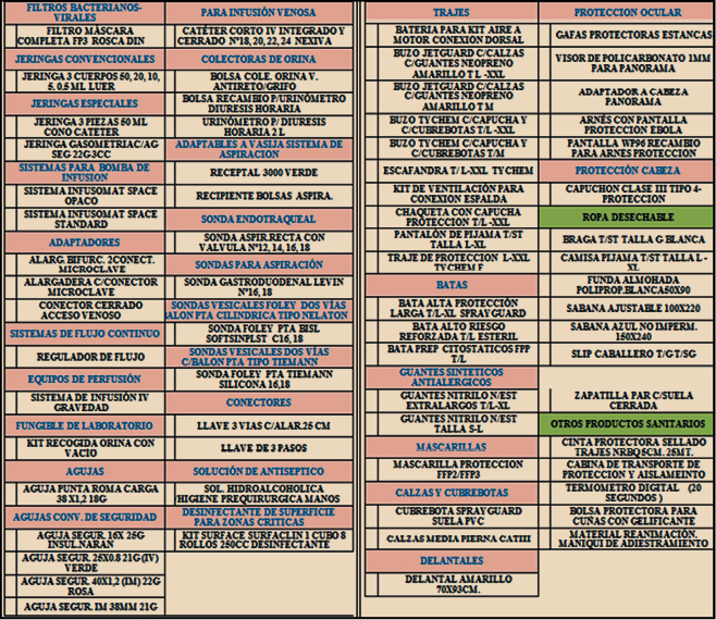 Para la dotación de la UAAN del HCDGU, se ha elegido las prendas de Categoría III, tipo 3B en sus distintas presentaciones. Es vital la selección del tipo de equipamiento y planificar su utilización. Por eso, en la memoria de necesidades se ha de definir un protocolo específico para la colocación y retirada de los EPIs en cualquiera de sus presentaciones. A través de la Sección de Productos Sanitarios del Servicio de Farmacia del Hospital, se han enviado a la Planta 22 los siguientes productos (Tabla 3).