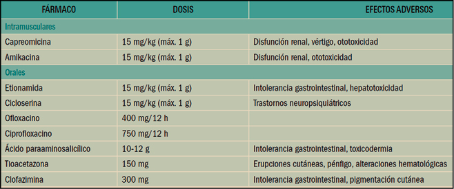 Las pautas alternativas propuestas en el tratamiento de la tuberculosis resistente dependen del tipo predominante de resistencia del M. tuberculosis: