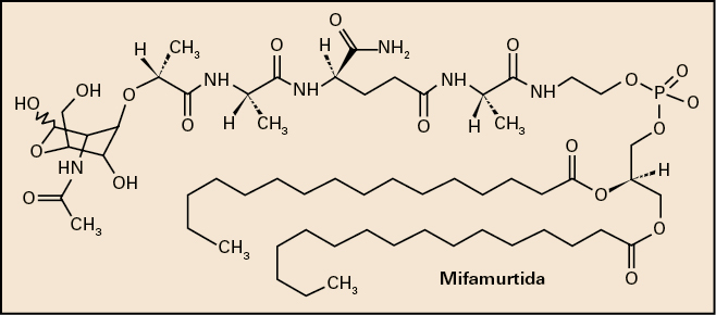 La mifamurtida es un agente inmunoestimulante, autorizado en niños, adolescentes y adultos jóvenes para el tratamiento del osteosarcoma de alto grado resecable no metastásico después de una resección quirúrgica macroscópicamente completa. Se utiliza en combinación con quimioterapia postoperatoria combinada.