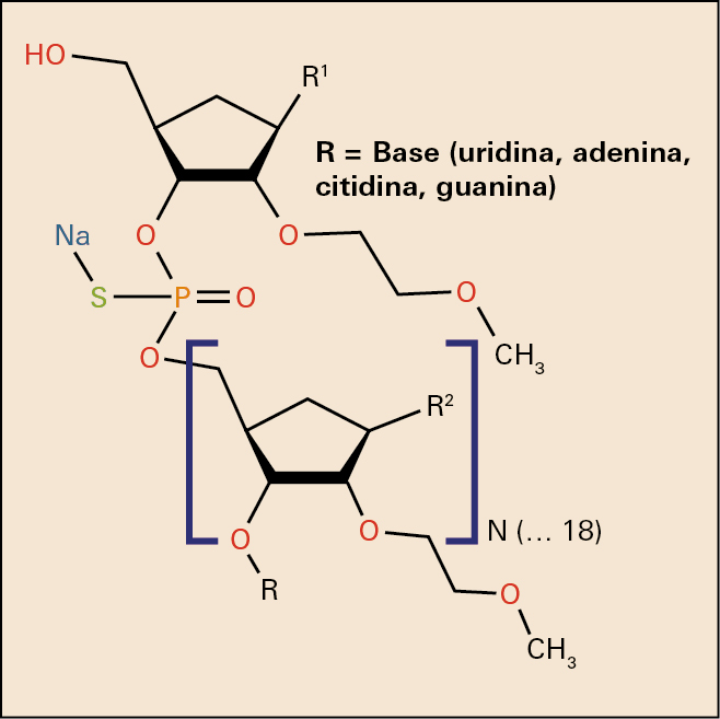 Nusinersén es un oligonucleótido antisentido capaz de incrementar la producción de la proteína SMN funcional, cuya deficiencia está relacionada con el origen de la atrofia muscular espinal 5q, indicación para la cual ha recibido autorización, como medicamento huérfano. El fármaco aumenta la proporción de inclusión del exón 7 en los transcritos del ácido ribonucleico mensajero (ARNm) del gen de supervivencia de la neurona motora 2 (SMN2) al unirse a un sitio ISS-N1 (silenciador del proceso de corte y empalme intrónico) localizado en el intrón 7 del precursor del ácido ribonucleico mensajero (pre-ARNm) del SMN2. Al unirse, el nusinersén desplaza los factores de corte y empalme, produciendo la retención del exón 7 en el ARNm del SMN2 y, por consiguiente, cuando se produce el ARNm del SMN2, se puede traducir en su proteína SMN funcional de longitud completa, lo que se relaciona con la eficacia terapéutica. Aunque con numerosas limitaciones, no cabe duda de que nos encontramos ante un medicamento auténticamente innovador, por varios motivos. Es el primer oligonucleótido antisentido (OAS) que permite actuar sobre el fundamento genético de la atrofia muscular espinal 5q y, lo que realmente resulta más relevante, su capacidad para actuar sobre una enfermedad que actualmente carece de tratamiento etiológico. Ciertamente, los resultados no son espectaculares pero abren una puerta a la esperanza, aunque habremos de esperar los datos de los ensayos clínicos en curso para poder establecer con mayor consistencia las conclusiones definitivas.