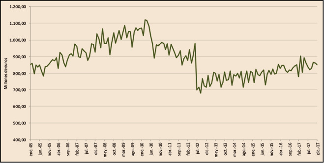 En la Figura 2 se visualiza la evolución mensual de la factura desde el mes de enero de 2005 y hasta diciembre de 2017.