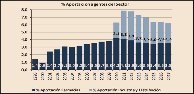 Como consecuencia de lo anterior, la factura de medicamentos y productos sanitarios a cargo del SNS en 2017, ha sido un 2,5% superior a la factura de 2016, lo que ha provocado, a su vez, el incremento de las aportaciones de las farmacias derivada de la aplicación de la escala de deducciones establecida en el RD 823/2008, de 16 de mayo, por el que se establecen los márgenes, deducciones y descuentos correspondientes a la distribución y dispensación de medicamentos de uso humano, en concreto, un 5,3% más que en 2016.
