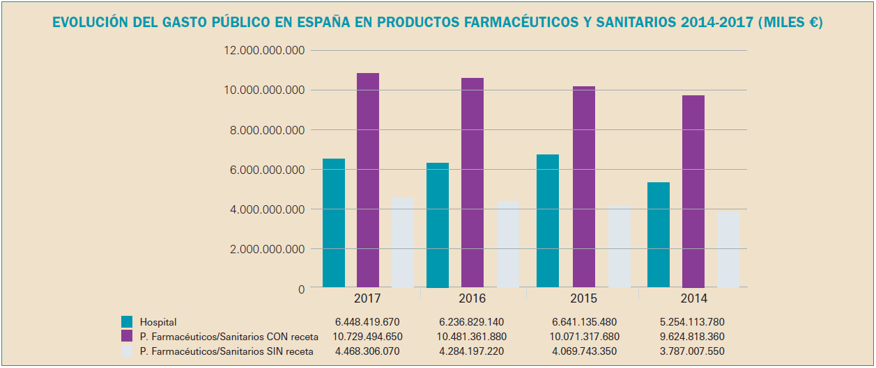 En 2017, la factura de medicamentos que ha supuesto el 91% de la factura total a cargo del SNS, se ha incrementado un 2,3% respecto a 2016 mientras que la factura de efectos y accesorios que ha representado el 6,7% de la factura total se ha incrementado un 4,3%. En cuanto a la factura de fórmulas, con un peso del 2,4% de la factura total, se ha incrementado un 6,6% respecto a 2016.