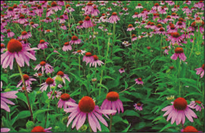 - Echinaceae purpureae herba: “Partes aéreas floridas, enteras o cortadas, desecadas, de Echinacea purpurea (L.) Moench.”. Debe contener como mínimo un 0,1% por ciento de la suma de ácido caftárico y ácido achicórico, referido a la droga desecada.