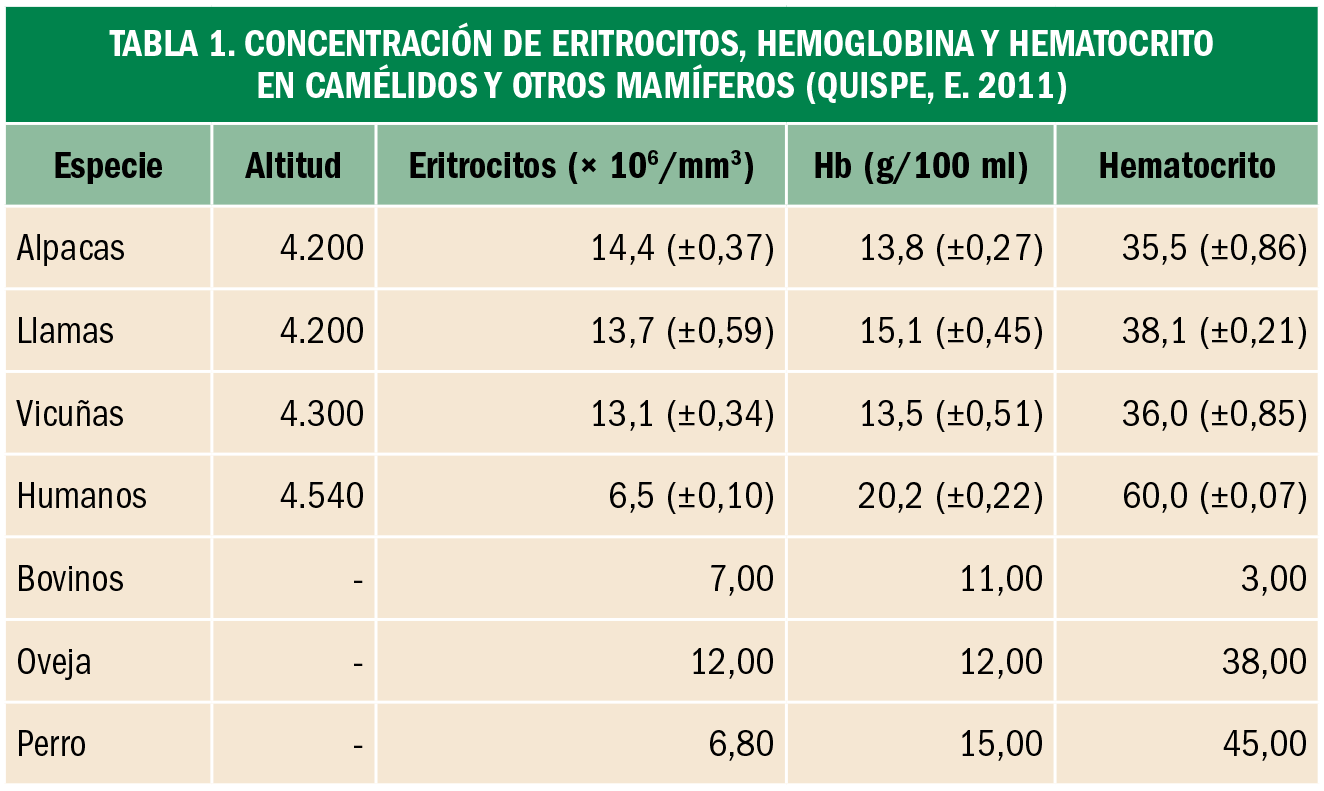 Debido a que la cantidad de hemoglobina en camélidos sudamericanos es levemente diferente (alta comparada con otras especies domésticas, pero baja comparada con seres humanos) y el hematocrito es bajo, el mejor flujo sanguíneo en los vasos podría explicarse debido a que existiría un menor contacto de los glóbulos rojos y de la hemoglobina con las paredes de los vasos; esto hace que la inactivación del factor relajante derivado del endotelio y del óxido nítrico sea menor, dando mayor oportunidad a éstos para favorecer la relajación de los vasos y así disminuir la resistencia del flujo sanguíneo, lo cual evitaría problemas de elevadas presiones vasculares. Esta posibilidad se podría referir como una situación de adaptación morfofisiológica de la llama, alpaca y vicuña que viven en situaciones extremas de altitud.