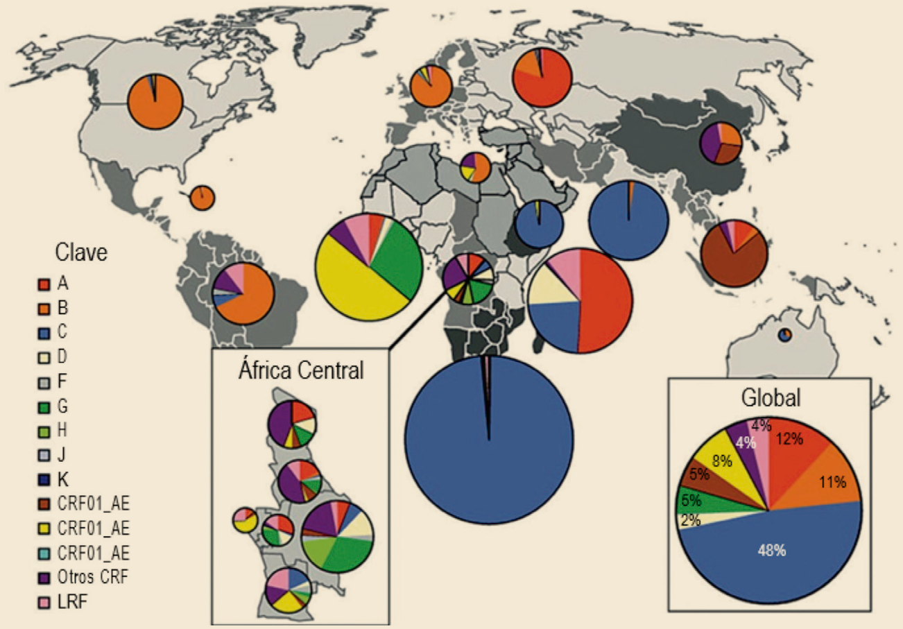 En general, los virus VIH se encuentran más localizados en individuos de diversos países de África Occidental, donde se distribuyen principalmente los primates portadores, y áreas con lazos históricos como Portugal y la India. Tanto el VIH-1, el más prevalente y distribuido a nivel mundial, como el VIH-2 son capaces de evolucionar a SIDA sin tratamiento. Dentro de cada uno de esos dos grandes grupos de VIH, se han descrito numerosos subtipos, algunos de los cuales han evolucionado mayoritariamente de forma pandémica, pero también se han identificado cepas recombinantes intersubtipo2. La gran variabilidad que presenta el virus VIH es uno de los mayores inconvenientes para conseguir un tratamiento eficaz. La tipificación del VIH resulta muy relevante en cuanto al pronóstico y al tratamiento de la infección, ya que los diferentes subtipos presentan características biológicas diferentes que pueden condicionar su patogenicidad, su capacidad de transmisión y su resistencia o sensibilidad a los antirretrovirales.